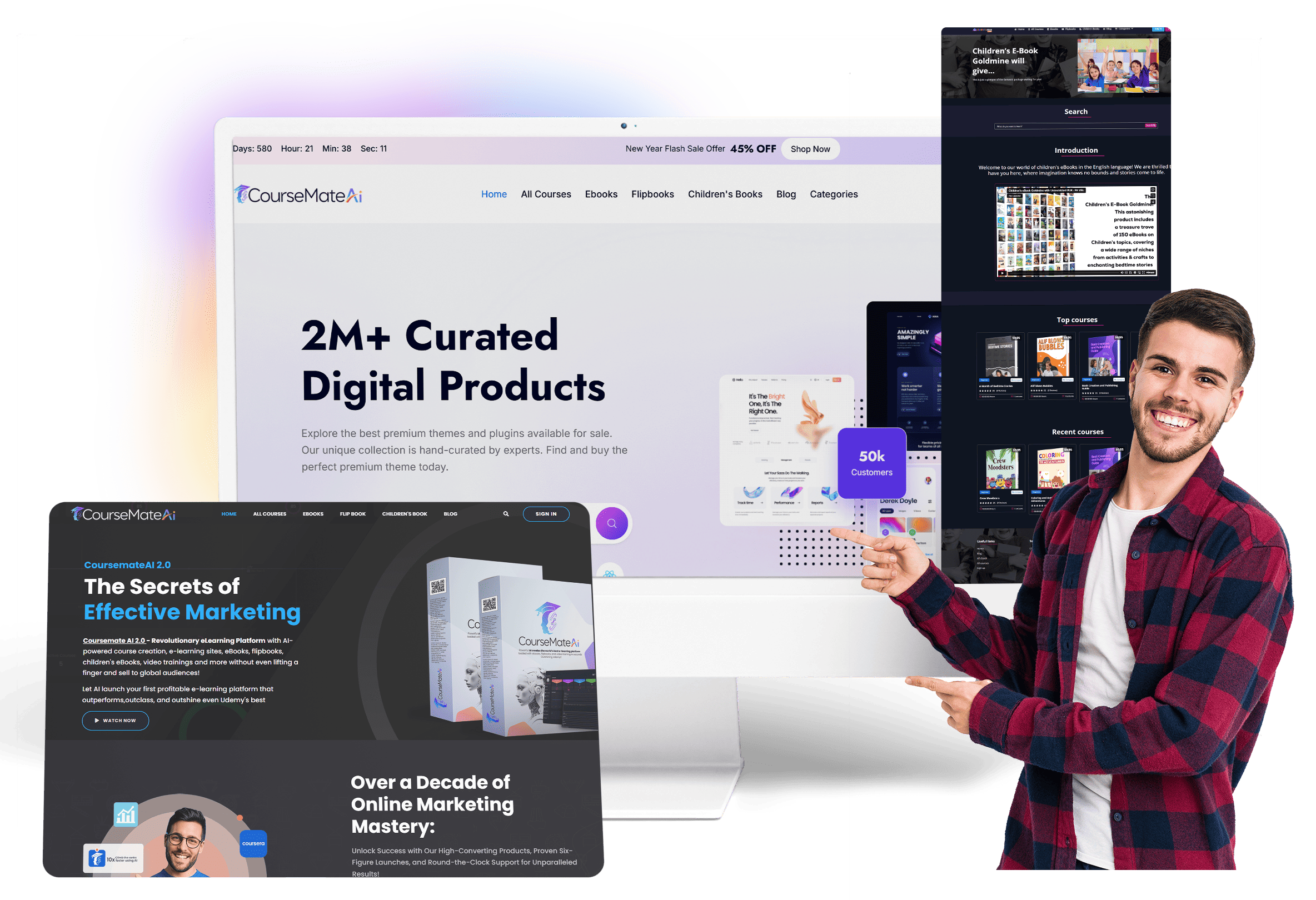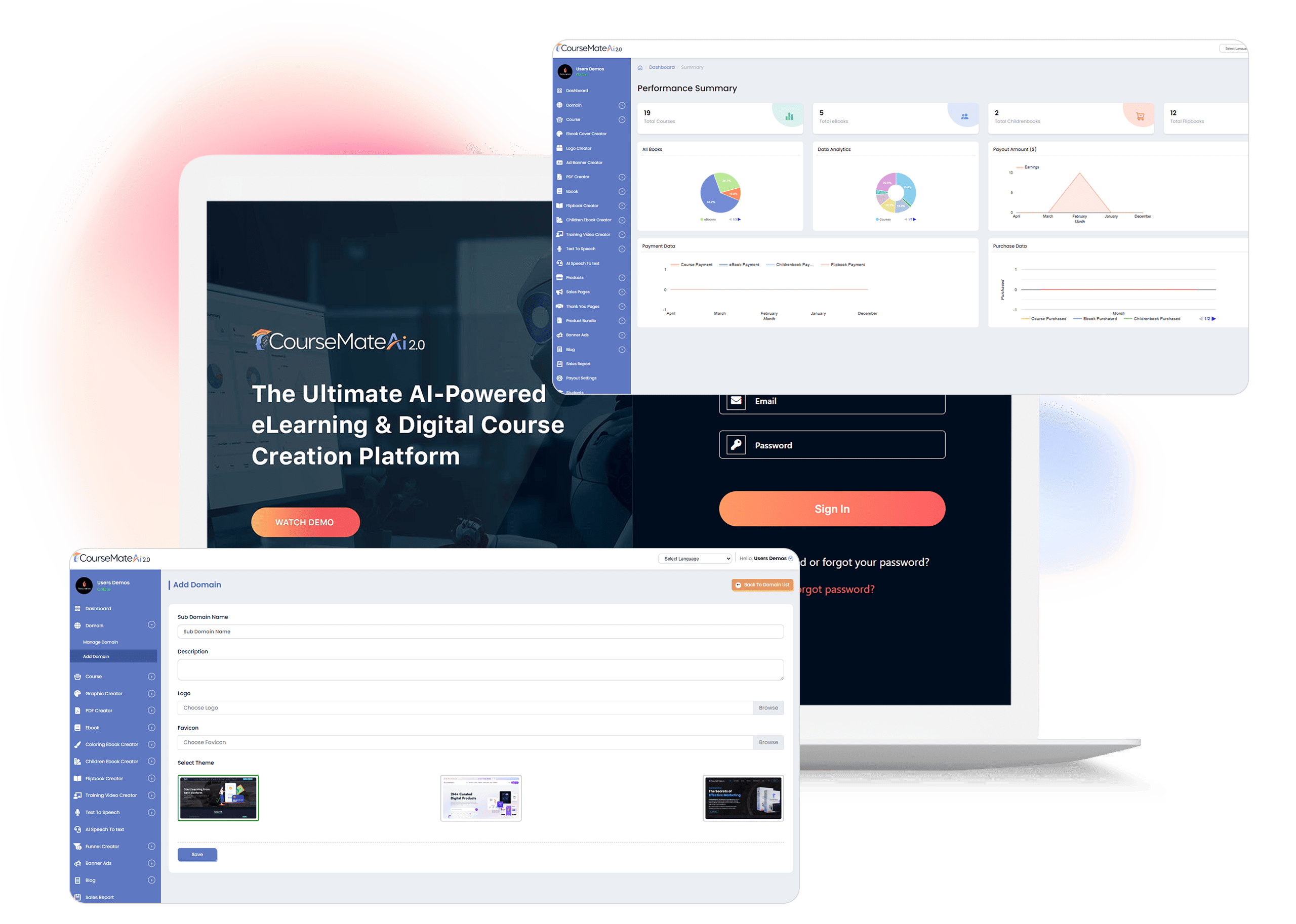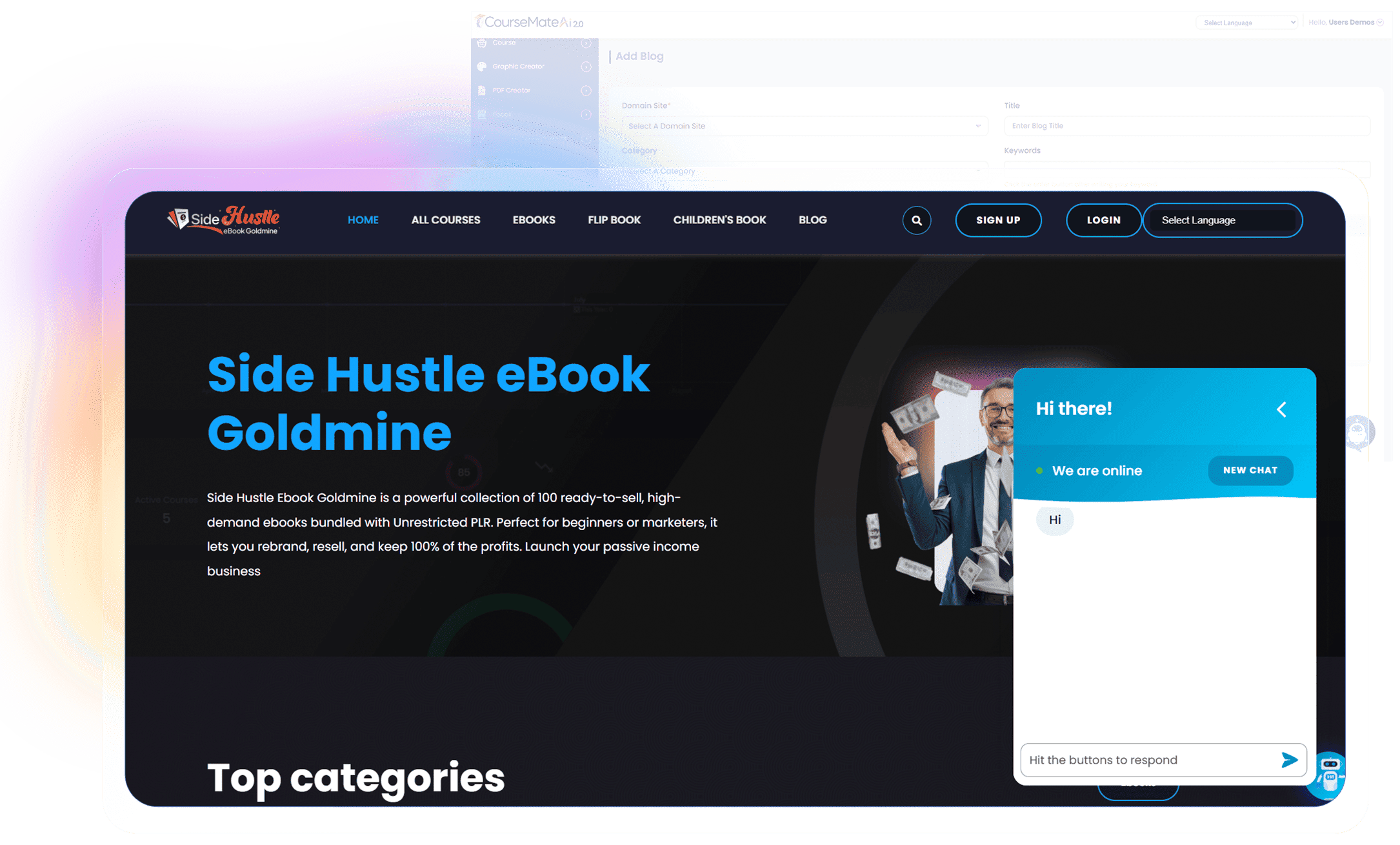 With a single click, CourseMateAi 2.0 crafts stunning and responsive e-learning websites with your own courses, payments, and content. No coding, no hassle—just seamless and professional sites that leave a lasting impression.