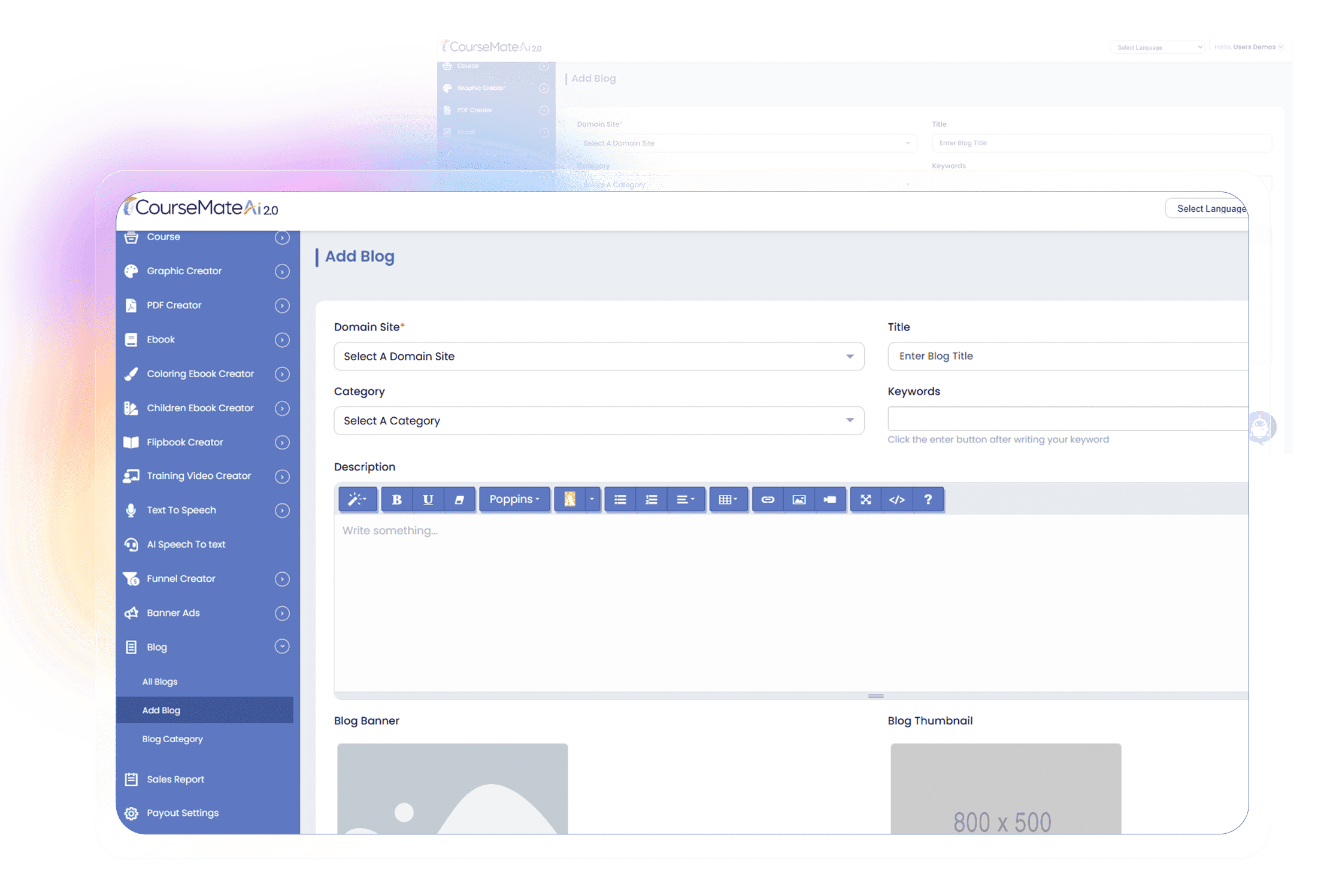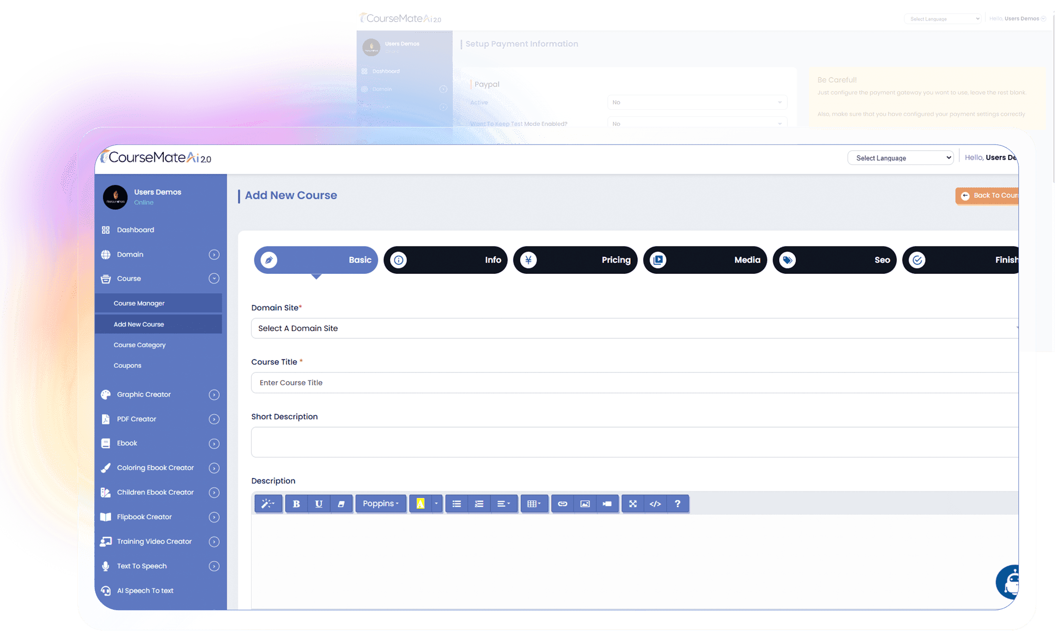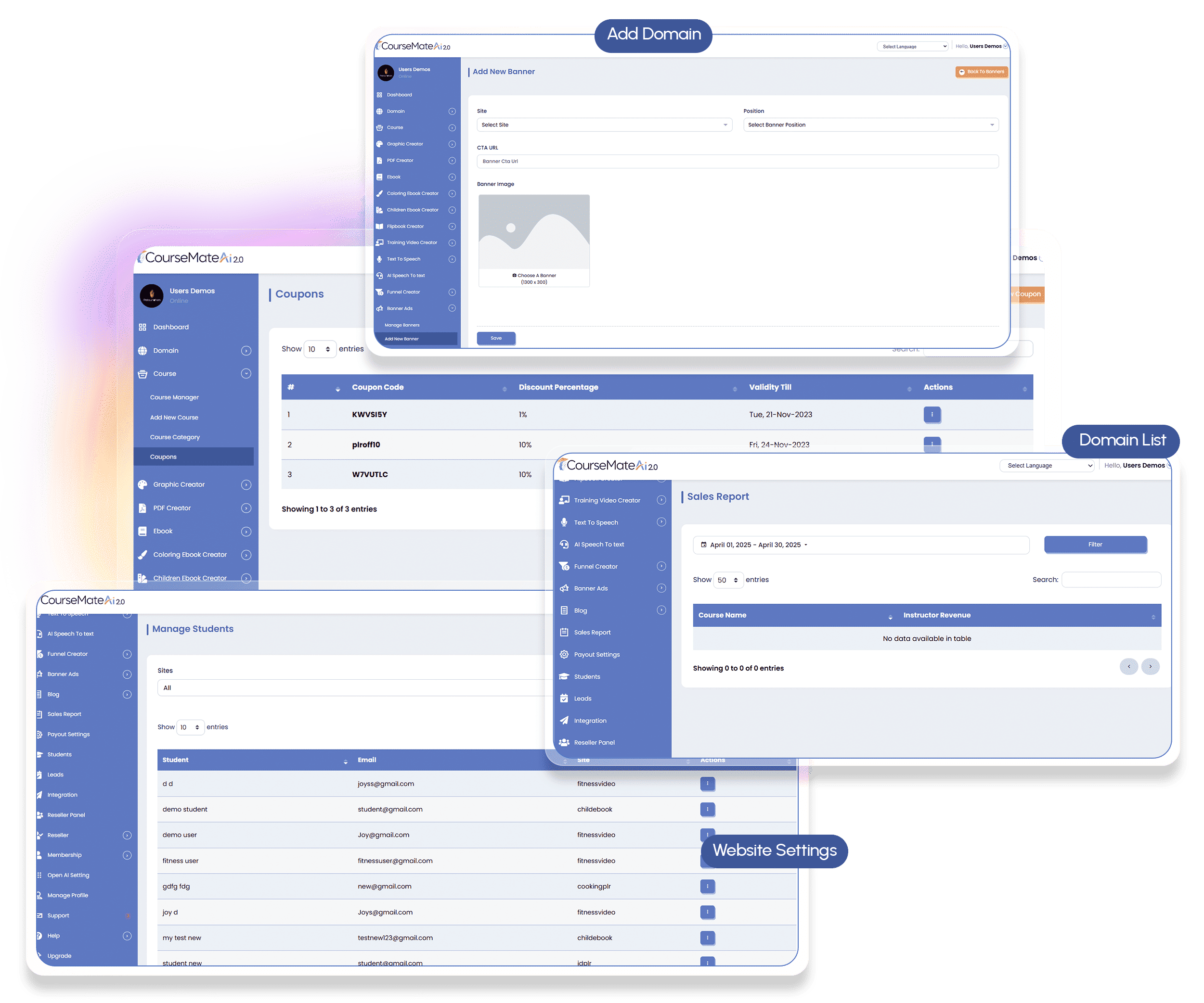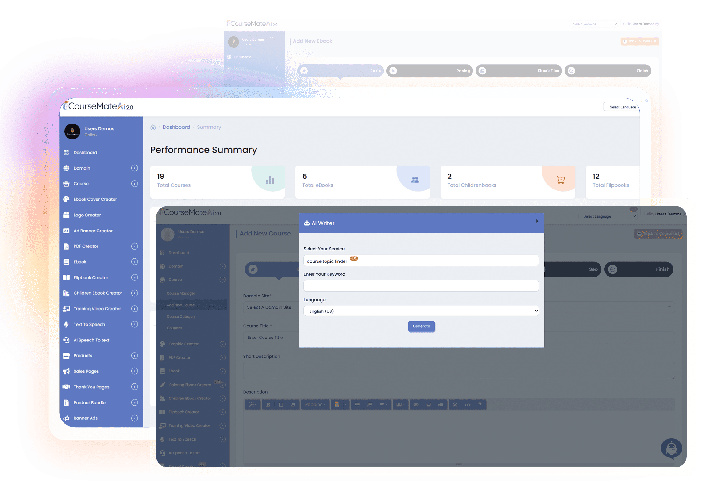 With a single click, CourseMateAi 2.0 crafts stunning and responsive e-learning websites with your own courses, payments, and content. No coding, no hassle—just seamless and professional sites that leave a lasting impression.