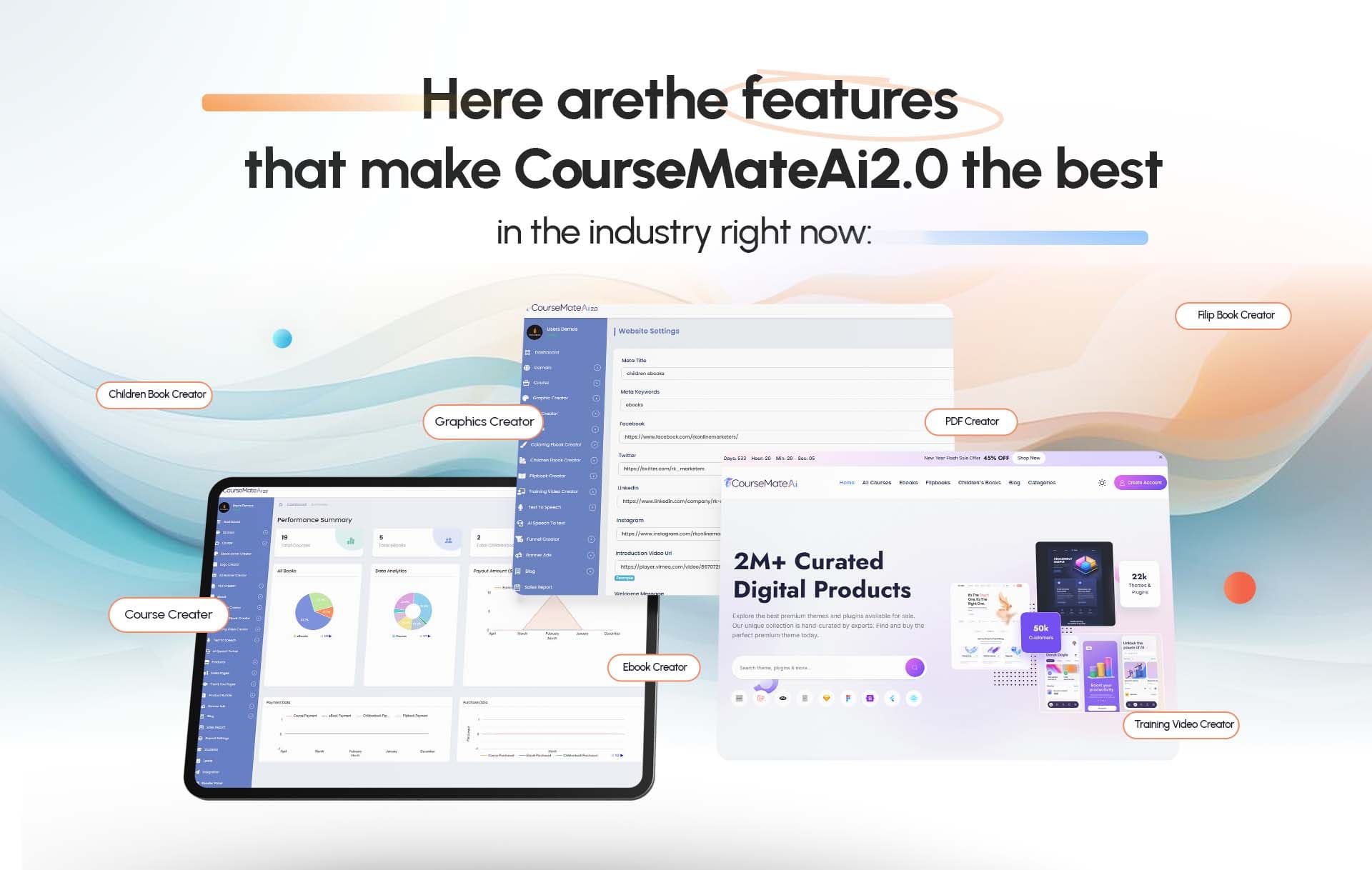 CourseMateAi 2.0 gives you a complete business system designed to help you create, market, sell, and scale your digital learning academy — all under one roof, for a one-time price of $67.